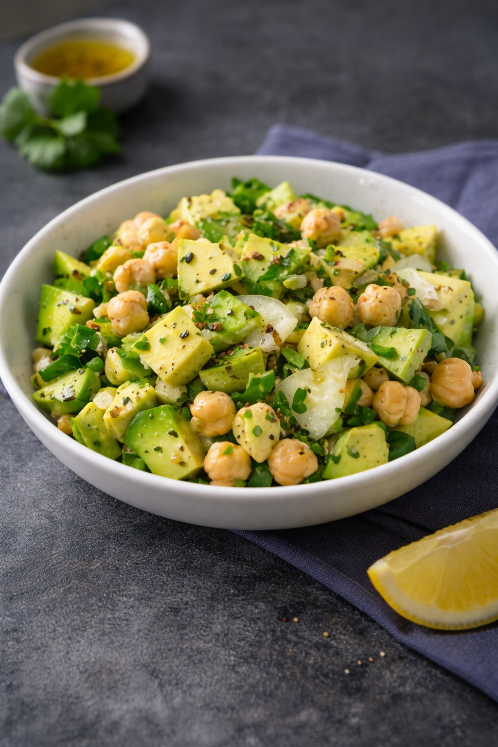 A fresh and vibrant salad with ripe avocado, crisp lettuce, and a zesty dressing that brings comfort to any meal.
