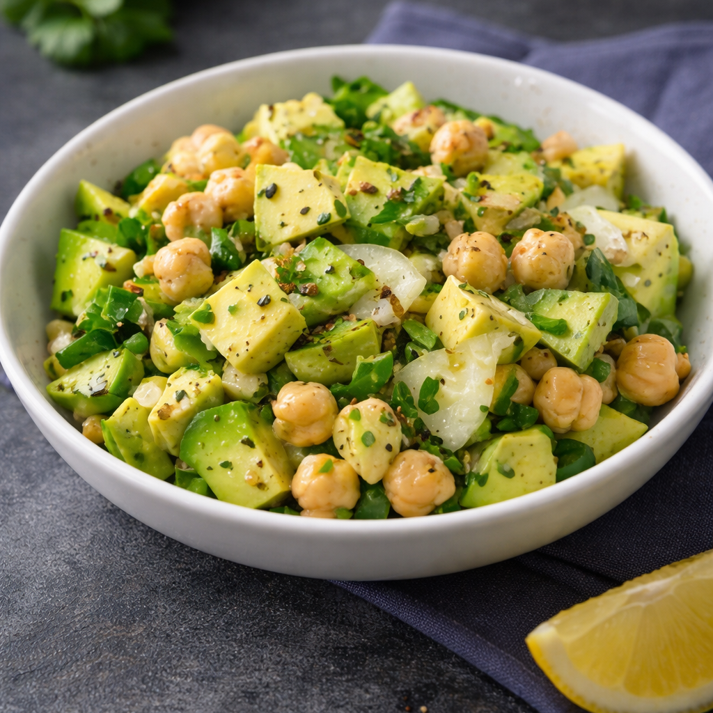 3. Add chickpeas, avocado, and cucumber to a large mixing bowl.