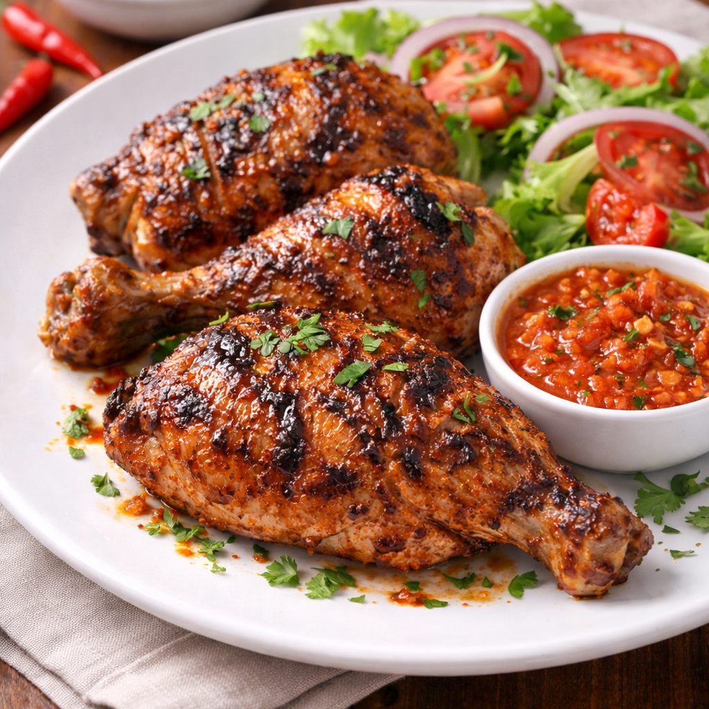 Benin spicy grilled chicken is a flavorful dish seasoned with aromatic spices and grilled until juicy and slightly smoky. This recipe brings bold African flavors and pairs beautifully with rice or fried plantains.