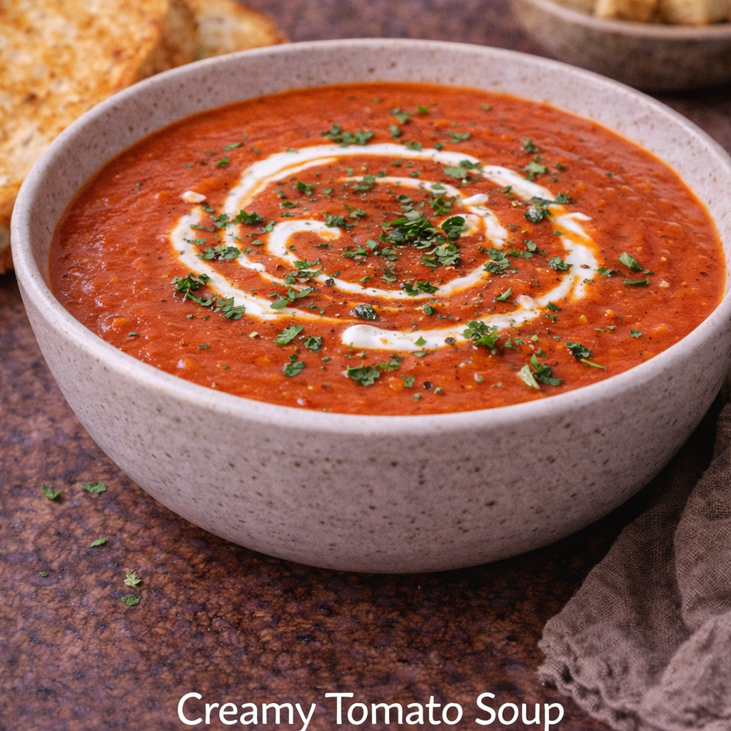 A warm bowl of creamy tomato soup is comforting and full of rich flavor. Made with ripe tomatoes, gent herbs, and a touch of cream, this smooth soup is perfect for a light meal or paired with fresh bread.
