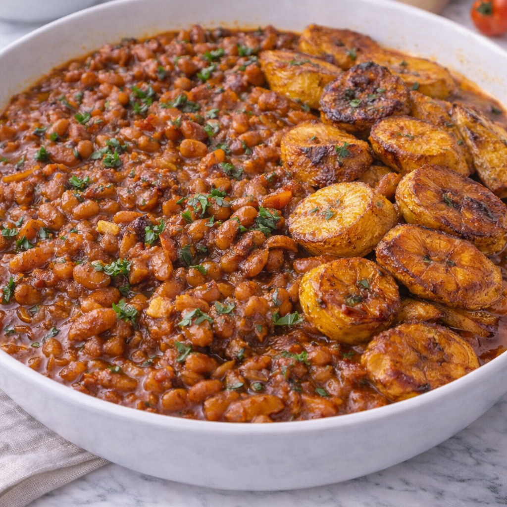 – Fry plantains and serve together.
