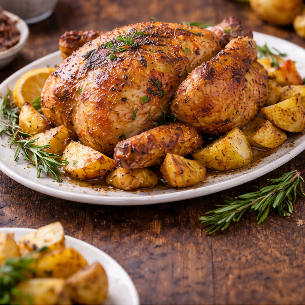 2. Rub chicken with oil, herbs, garlic, salt, and pepper.