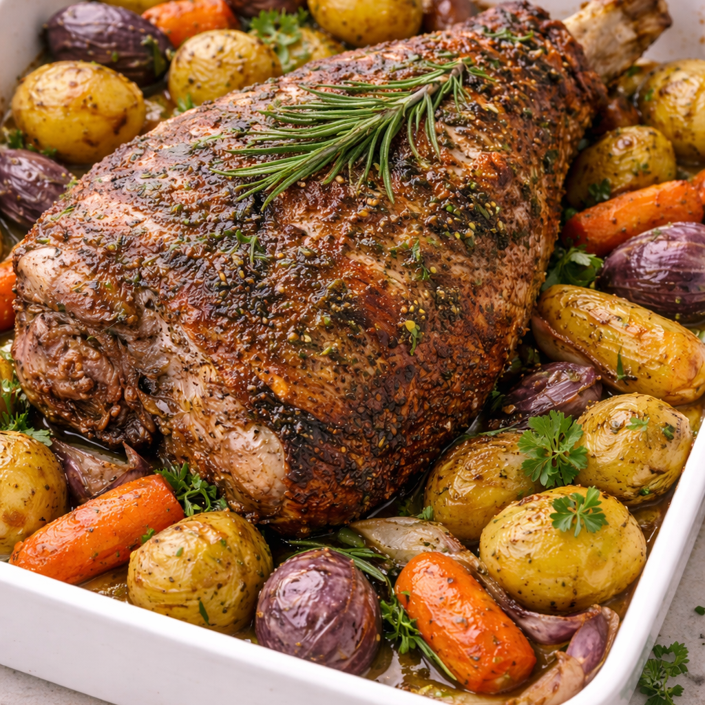 Lamb is a rich source of protein and iron, supporting strength and energy. When paired with roasted vegetables, this meal provides balanced nourishment, warmth, and lasting satisfaction, making it ideal for both celebration and family comfort.