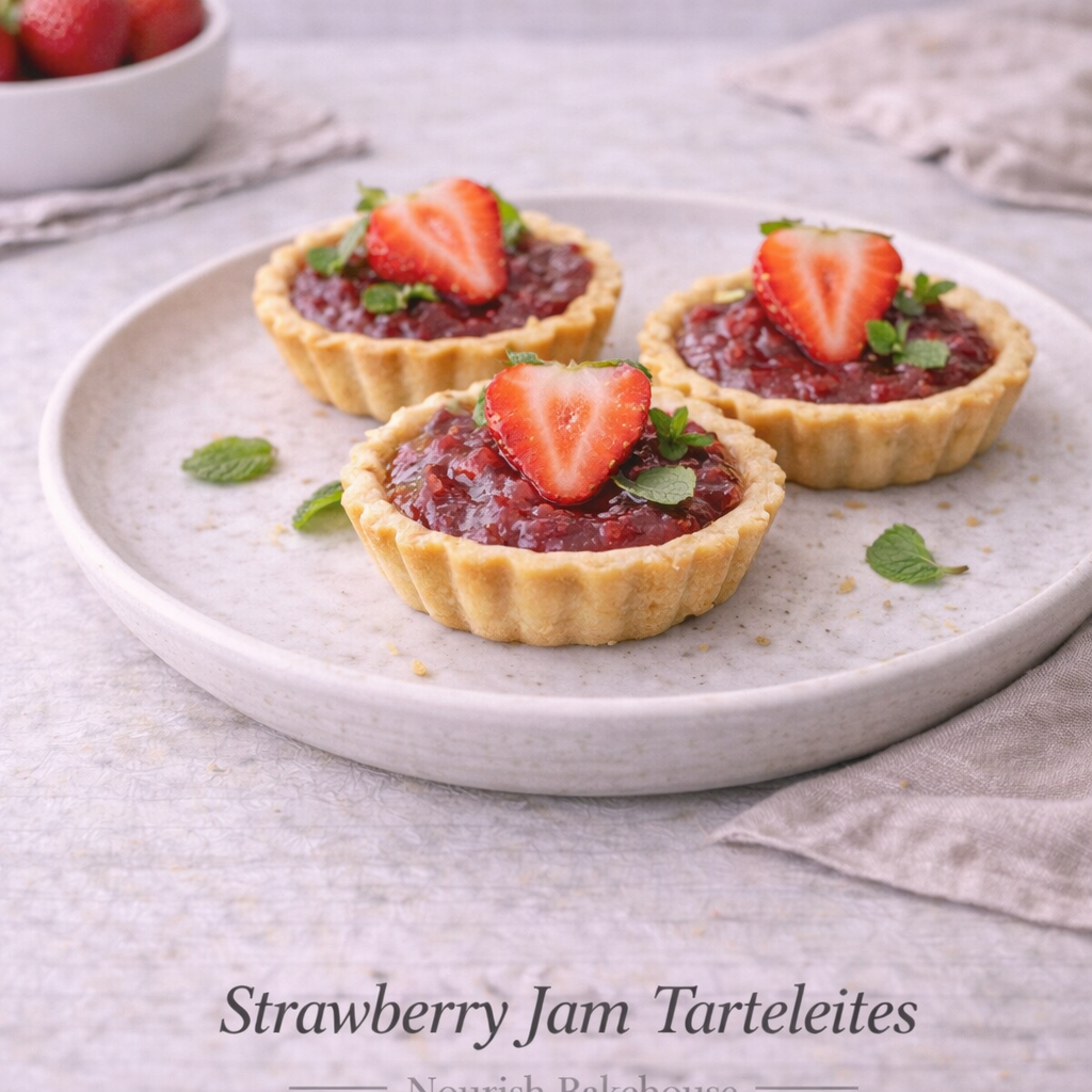 5. Prick the base lightly with a fork and fill with strawberry jam.